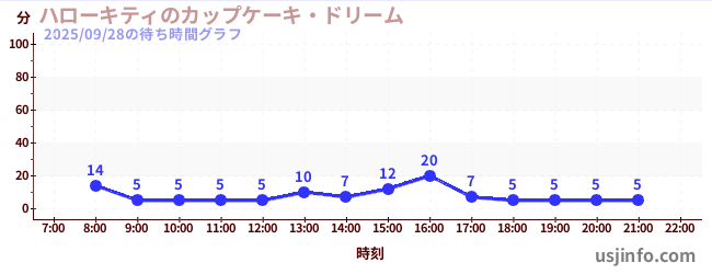 • ハローキティのカップケーキ・ドリーム$B$N(B2025年09月28日の待ち時間