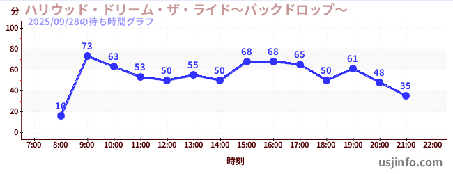 • ハリウッド・ドリーム・ザ・ライド〜バックドロップ〜$B$N(B2025年09月28日の待ち時間