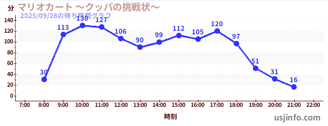 • マリオカート ~クッパの挑戦状~$B$N(B2025年09月28日の待ち時間
