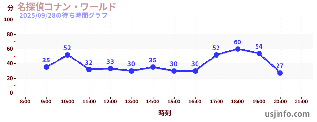 • 名探偵コナン・ワールド$B$N(B2025年09月28日の待ち時間