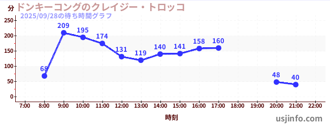 • ドンキーコングのクレイジー・トロッコ$B$N(B2025年09月28日の待ち時間