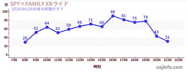 • SPY×FAMILY XRライド$B$N(B2025年09月28日の待ち時間