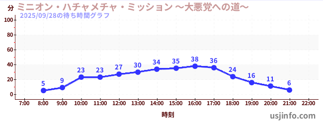 • ミニオン・ハチャメチャ・ミッション ~大悪党への道~$B$N(B2025年09月28日の待ち時間