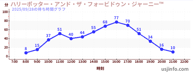 • ハリーポッター・アンド・ザ・フォービドゥン・ジャーニー™$B$N(B2025年09月28日の待ち時間