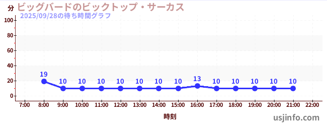 • ビッグバードのビックトップ・サーカス$B$N(B2025年09月28日の待ち時間