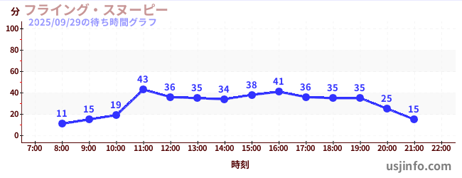 • スヌーピーのフライング•エース•アドベンチャー$B$N(B2025年09月29日の待ち時間