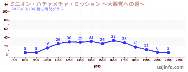 • ミニオン・ハチャメチャ・ミッション ~大悪党への道~$B$N(B2025年09月29日の待ち時間