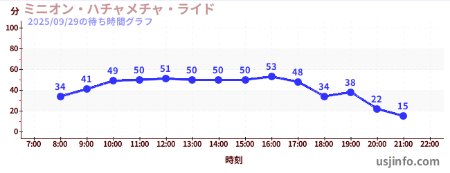 • ミニオン・ハチャメチャ・ライド$B$N(B2025年09月29日の待ち時間