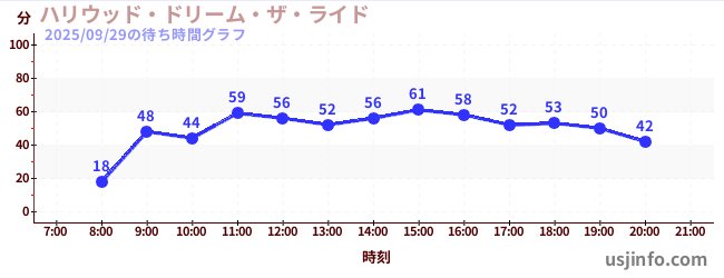 • ハリウッド・ドリーム・ザ・ライド$B$N(B2025年09月29日の待ち時間