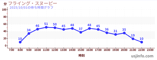 • フライング・スヌーピー$B$N(B2025年10月01日の待ち時間