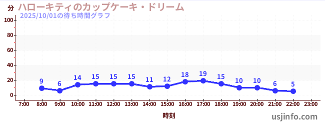 • ハローキティのカップケーキ・ドリーム$B$N(B2025年10月01日の待ち時間