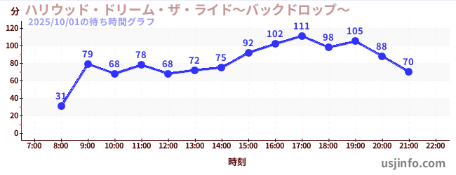 • ハリウッド・ドリーム・ザ・ライド〜バックドロップ〜$B$N(B2025年10月01日の待ち時間