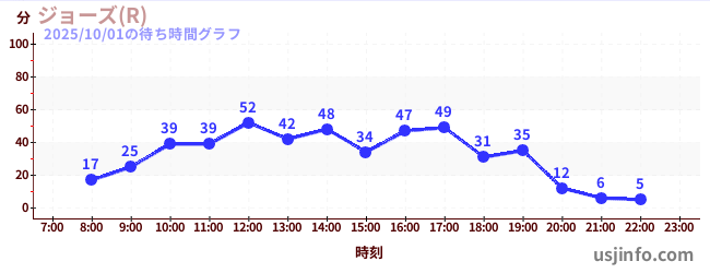 • ジョーズ(R)$B$N(B2025年10月01日の待ち時間