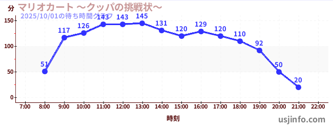 • マリオカート ~クッパの挑戦状~$B$N(B2025年10月01日の待ち時間