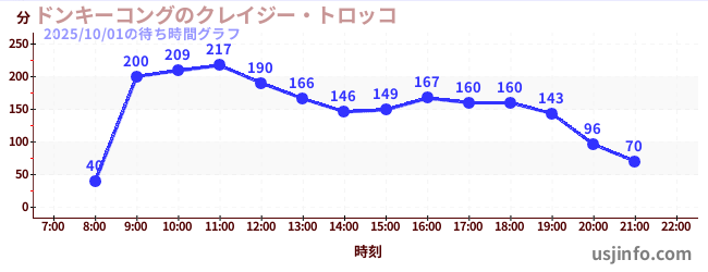 • ドンキーコングのクレイジー・トロッコ$B$N(B2025年10月01日の待ち時間