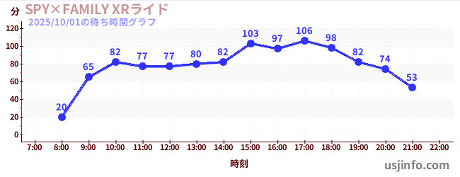 • SPY×FAMILY XRライド$B$N(B2025年10月01日の待ち時間