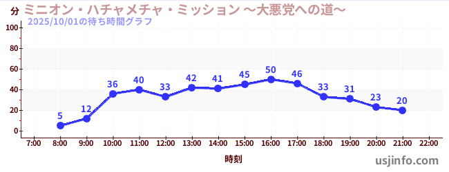 • ミニオン・ハチャメチャ・ミッション ~大悪党への道~$B$N(B2025年10月01日の待ち時間