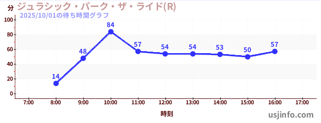 • ジュラシック・パーク・ザ・ライド(R)$B$N(B2025年10月01日の待ち時間