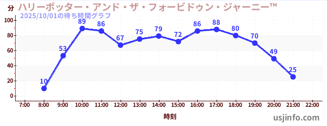 • ハリーポッター・アンド・ザ・フォービドゥン・ジャーニー™$B$N(B2025年10月01日の待ち時間
