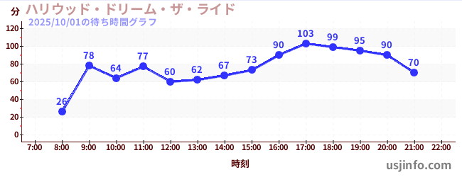 • ハリウッド・ドリーム・ザ・ライド$B$N(B2025年10月01日の待ち時間