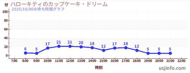 • ハローキティのカップケーキ・ドリーム$B$N(B2025年10月06日の待ち時間