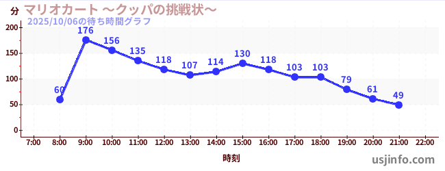 • マリオカート ~クッパの挑戦状~$B$N(B2025年10月06日の待ち時間