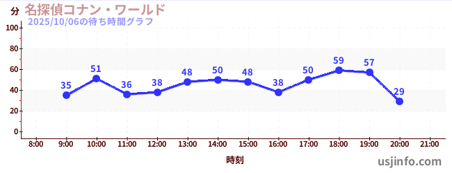• 名探偵コナン・ワールド$B$N(B2025年10月06日の待ち時間