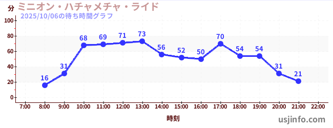 • ミニオン・ハチャメチャ・ライド$B$N(B2025年10月06日の待ち時間