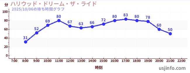 • ハリウッド・ドリーム・ザ・ライド〜バックドロップ〜$B$N(B2025年10月06日の待ち時間