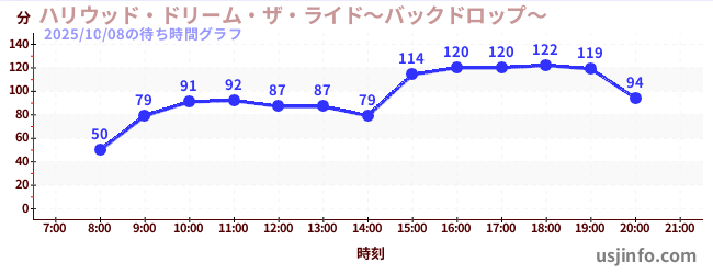• ハリウッド・ドリーム・ザ・ライド〜バックドロップ〜$B$N(B2025年10月08日の待ち時間