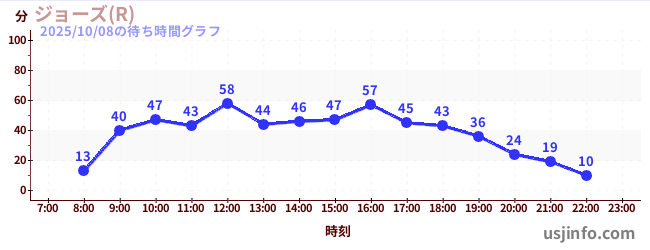 • ジョーズ(R)$B$N(B2025年10月08日の待ち時間