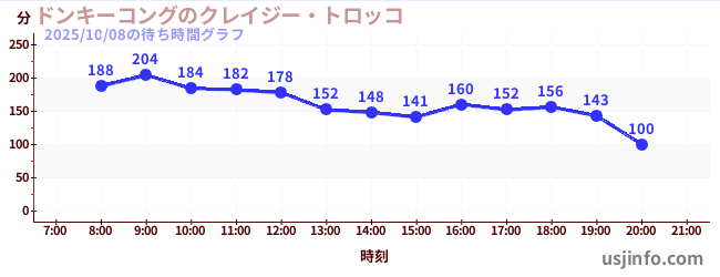 • ドンキーコングのクレイジー・トロッコ$B$N(B2025年10月08日の待ち時間