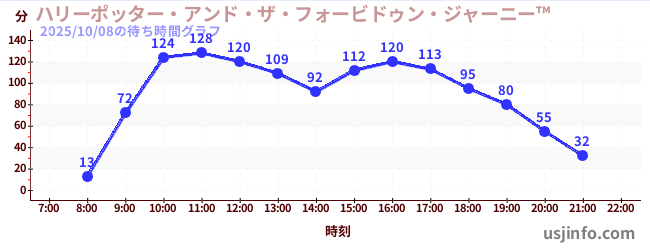 • ハリーポッター・アンド・ザ・フォービドゥン・ジャーニー™$B$N(B2025年10月08日の待ち時間