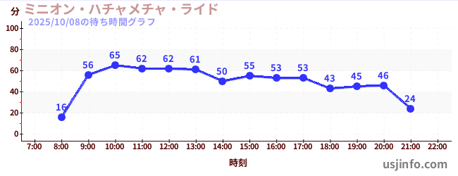 • ミニオン・ハチャメチャ・ライド$B$N(B2025年10月08日の待ち時間