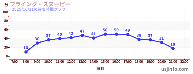 • フライング・スヌーピー$B$N(B2025年10月11日の待ち時間