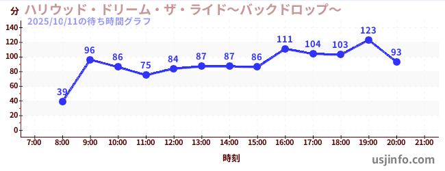 • ハリウッド・ドリーム・ザ・ライド〜バックドロップ〜$B$N(B2025年10月11日の待ち時間