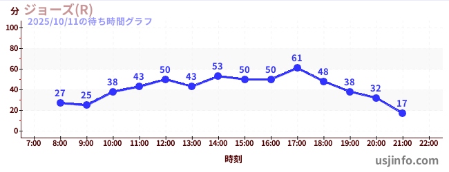 • ジョーズ(R)$B$N(B2025年10月11日の待ち時間