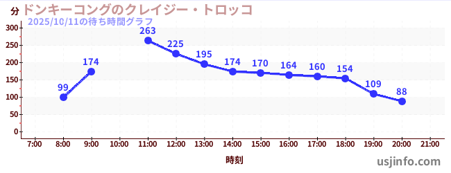 • ドンキーコングのクレイジー・トロッコ$B$N(B2025年10月11日の待ち時間
