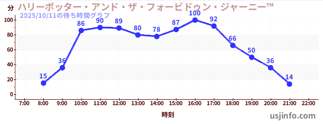• ハリーポッター・アンド・ザ・フォービドゥン・ジャーニー™$B$N(B2025年10月11日の待ち時間