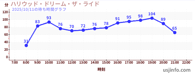 • ハリウッド・ドリーム・ザ・ライド$B$N(B2025年10月11日の待ち時間