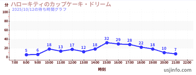 • ハローキティのカップケーキ・ドリーム$B$N(B2025年10月12日の待ち時間
