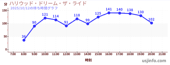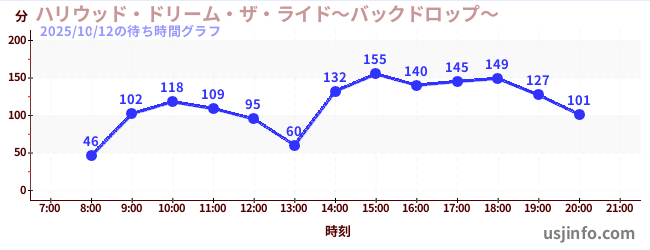 • ハリウッド・ドリーム・ザ・ライド〜バックドロップ〜$B$N(B2025年10月12日の待ち時間