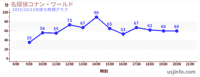 • 名探偵コナン・ワールド$B$N(B2025年10月12日の待ち時間