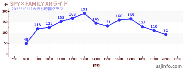 • SPY×FAMILY XRライド$B$N(B2025年10月12日の待ち時間
