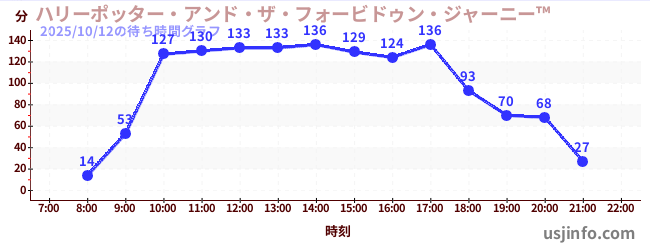 • ハリーポッター・アンド・ザ・フォービドゥン・ジャーニー™$B$N(B2025年10月12日の待ち時間
