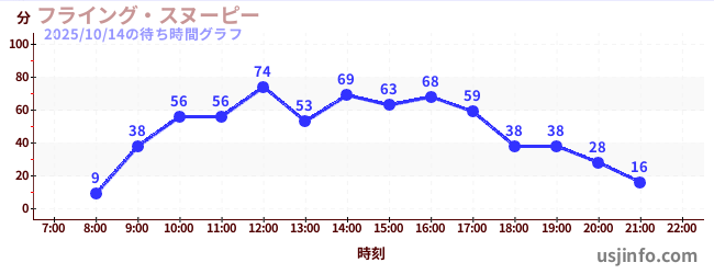 • フライング・スヌーピー$B$N(B2025年10月14日の待ち時間