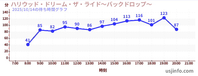 • ハリウッド・ドリーム・ザ・ライド〜バックドロップ〜$B$N(B2025年10月14日の待ち時間