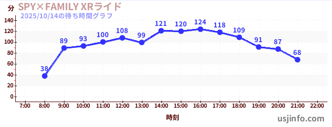 • SPY×FAMILY XRライド$B$N(B2025年10月14日の待ち時間