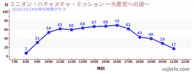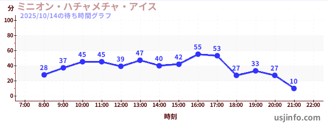 • ミニオン・ハチャメチャ・ライド$B$N(B2025年10月14日の待ち時間