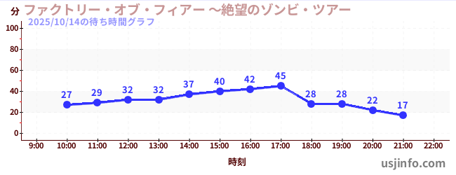 • ファクトリー・オブ・フィアー ~絶望のゾンビ・ツアー$B$N(B2025年10月14日の待ち時間